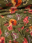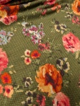 This lightweight waffle knit has a soft texture and semi-sheer look. It’s breathable with gentle stretch, giving it a comfortable feel and easy drape. Great for coverups, lightweight sweaters, or lined tops